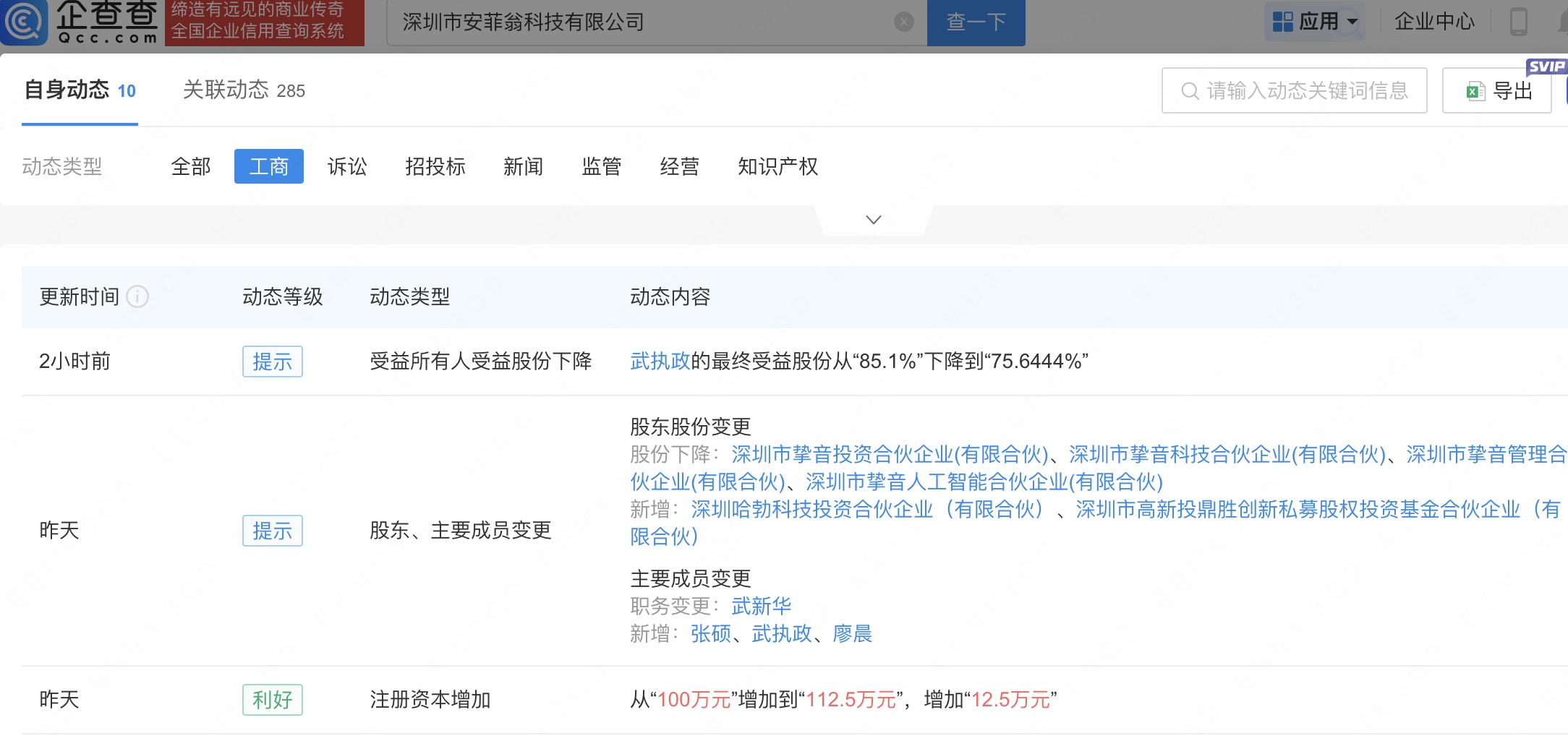 近日,深圳市安菲翁科技有限公司发生工商变更,新增华为旗下深圳哈勃科技投资合伙企业(有限合伙)等为股东买股票都可以配资,同时注册资本增至112.5万人民币。企查查信息显示,该公司成立于2024年,法定代表人为武新华,经营范围包括人工智能行业应用系统集成服务、人工智能通用应用系统等。公开信息显示,该公司是一家专注于语音AI大模型领域的公司。